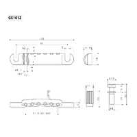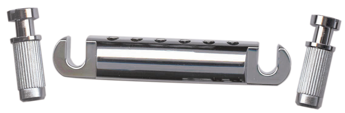 Gotoh GE101Z Traditional Style Stop Tailpiece with M8 Metric Thread Studs and Anchors. The M8 Mounting Studs will fit most import Les Paul guitars. Diecast Zinc. Chrome Finish.