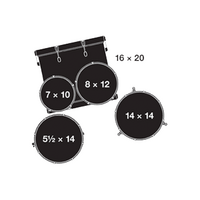 Bass: Clear UT Ambassador batter head with muffle ring, Coated white Gretsch resonant head with muffle ring