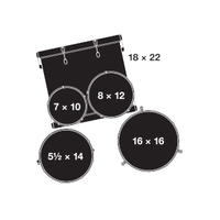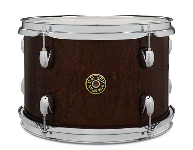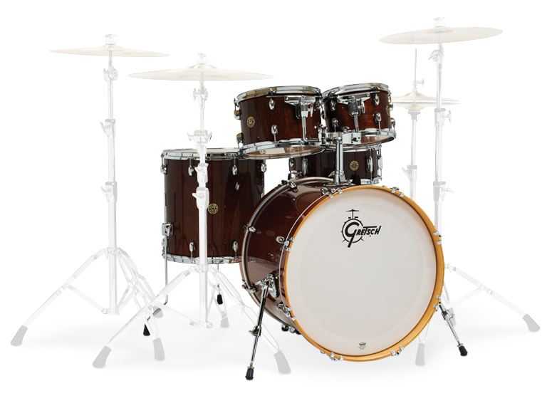 The 7-ply Gretsch-formula maple shell has 30-degree bearing edges and natural shell interiors. Bass drums include telescopic bass drum spurs and matching maple wood bass drum hoops. Toms and snare drums feature 2.3mm triple flanged hoops. All drums are fitted with Remo® drum heads.