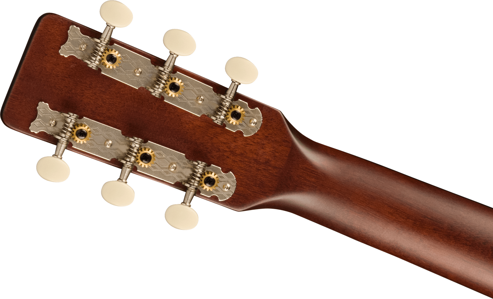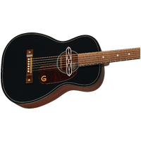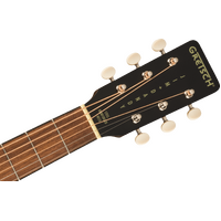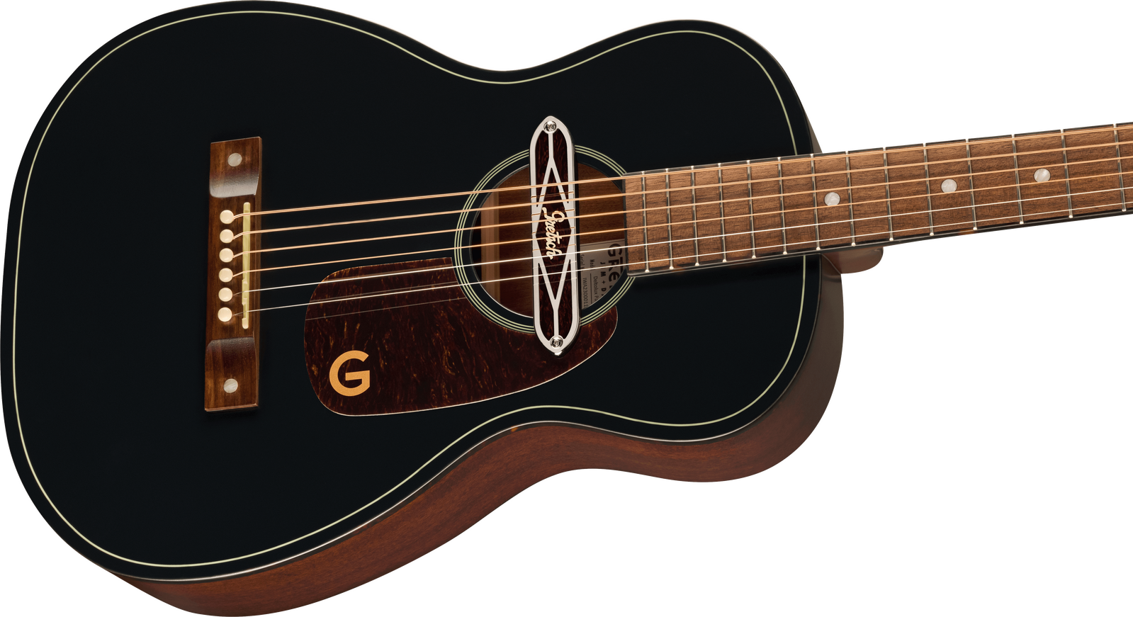 The X-braced body is crafted with select lightweight laminate tonewoods for an optimal balance of woody vintage tone and reliable durability, while the “C”-shape neck presents an inviting feel for hours of old-timey inspiration. The onboard Gretsch Deltoluxe magnetic soundhole pickup produces versatile electrified acoustic tone, providing added utility for live performance, recording, and effects pedals. Period-correct details such as a vintage-style pinned bridge, “G”-graphic pickguard, painted pinstripe purfling, 3-on-a-plate open-gear tuning machines and oversized dot fingerboard inlays combine for a nostalgic personality destined for any barnburner or jamboree.
