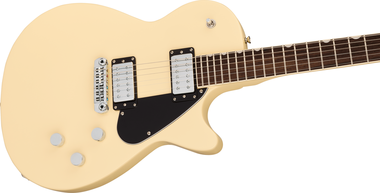 We’ve crafted a balanced, rounded "C" profile with tapered shoulders that is comfortable for all players with just enough mass to ensure precise playability in all positions. Mahogany construction lays a perfect foundation for bold and powerful tone. When it comes to tone and playability, there’s almost nothing more important than an instrument’s fingerboard. Electromatic Jets feature a genuine rosewood fingerboard with 1-ply aged white binding that generates both smooth, silky feel and warm, woody tone.