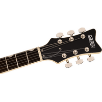 At the heart of each Electromatic Jet is a mahogany body with max core chambering for exceptional acoustic balance and strong attack. A smooth rounded heel allows for unimpeded access to the highest frets, while subtle comfort contours on the body create a balanced ergonomic fit for effortless playability and enhanced comfort.