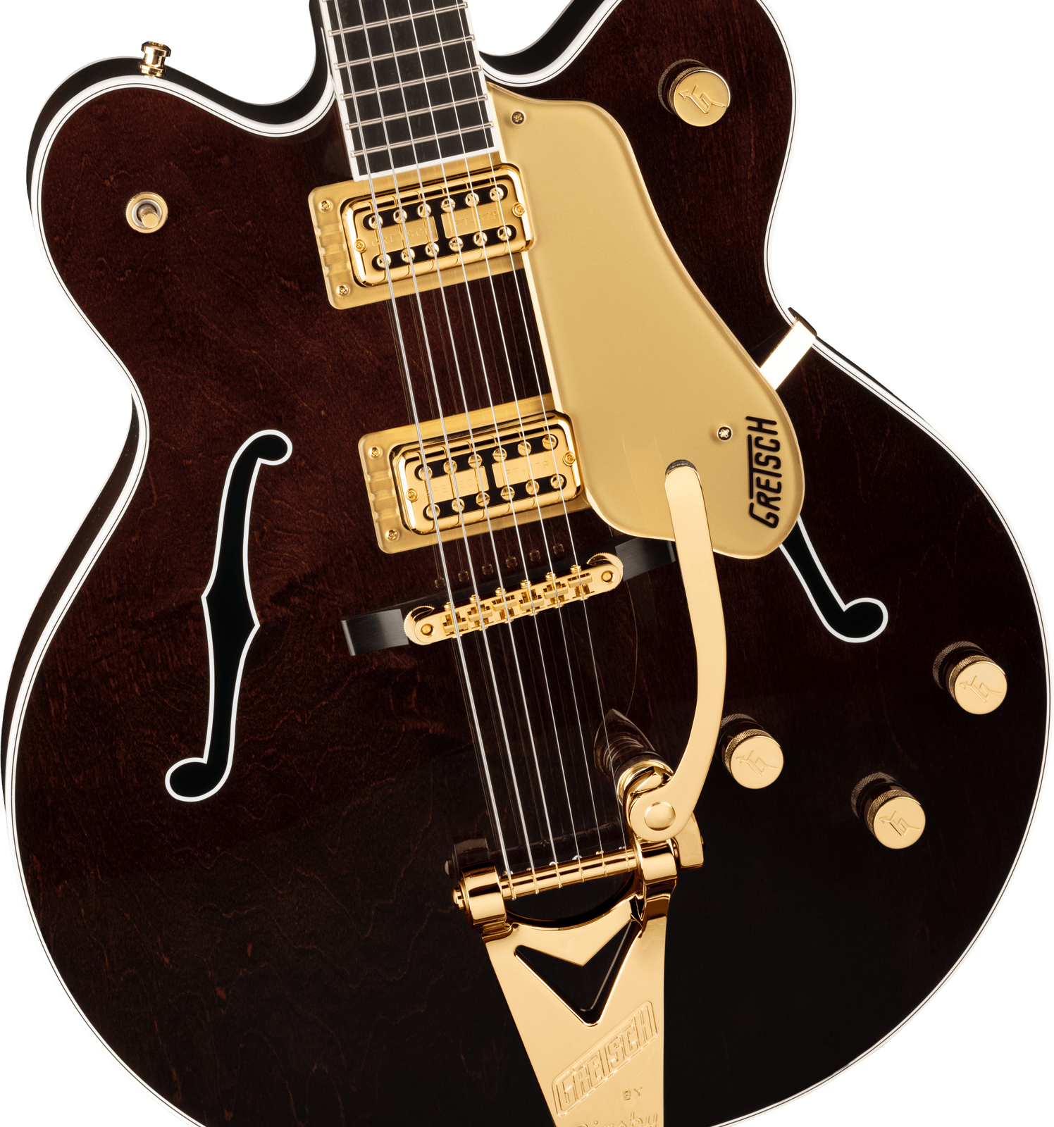 Designed to instill complete confidence from tailpiece to tuners, the G6122TG Players Edition Country Gentleman Hollow Body with String-Thru Bigsby and Gold Hardware can be trusted on every song, every night for powerful sound, tonal flexibility and full control of that classic Gretsch power.