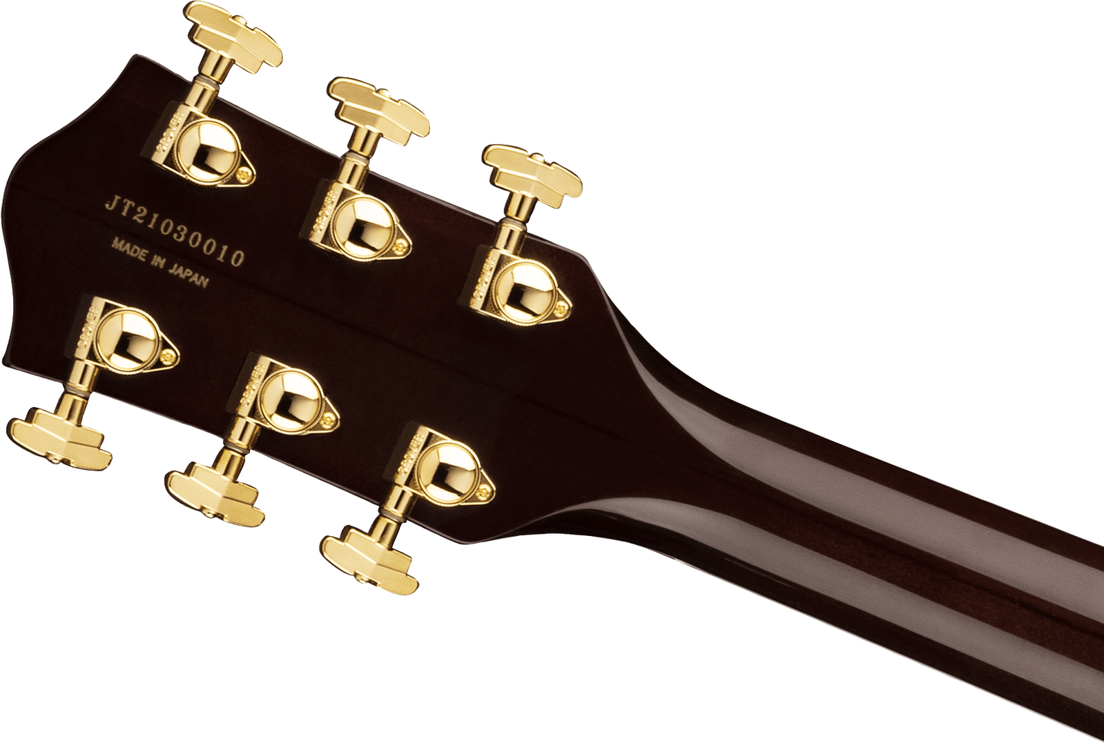 A 12"-radius ebony fingerboard with rolled edges, 22 medium jumbo frets top a 25.5"-scale maple neck with a comfortably familiar standard "U"-shaped profile for fluidly easy playing, while Luminlay® side dots offer precision fretting in low-light settings. The Bigsby B6GP vibrato tailpiece and Adjusto-Matic™ bridge combine with the Graph Tech® TUSQ® XL nut for maximum tuning stability. The Bigsby tailpiece is now string-through, making it quicker (and easier) to change strings, as well as providing increased vibration transfer for enhanced sustain.