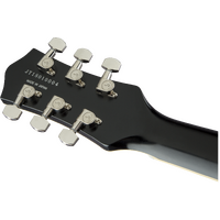 This models features the essential hallmarks of one of rock's most iconic instruments including "DIY" pickup routes with simulated screw holes, chrome switch plugs, Space-Control™ bridge and '60s-style tailpiece. Open-cavity thunder roars from the thin-skin satin finished chambered mahogany body and is magnified by a high-output TV Jones® Power'Tron™ pickup.