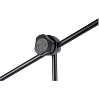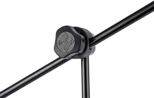 The HERCULES MS434B Stage Series 2 Way Mic Stand features the 3-in-1 Boom Clamp and Quick Turn Clutch. The specially designed 3-in-1 Boom Clamp simultaneously secures boom length, height and angle with a single adjustment knob.