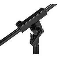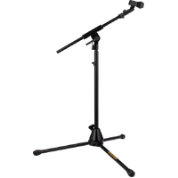 The Hercules MS520B PRO Low Profile Mic Stand with telescoping boom is ideal for drum and amp microphone applications. This stand features a versatile folding tripod base and a short telescopic boom arm that ensures a clutter-free setup without interfering with your gear. The heavy-duty power lock lever secures the boom arm position for reliable performance.