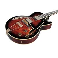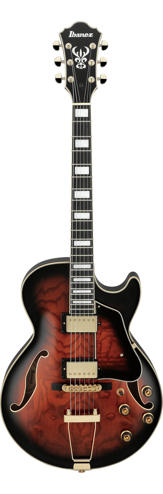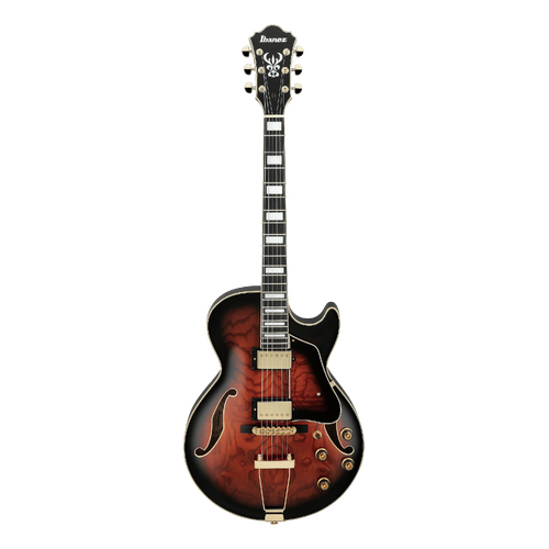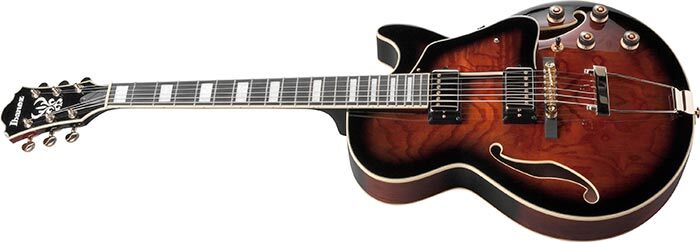 An expertly crafted 3pc Maple/ Mahogany set-in neck ensures body liveliness and is fitted with a rich Ebony fretboard with silky contrasting pearl block inlays. The tortoise shell colored pickguard provides an gorgeous appearance.Jazz fans will recognize the Ibanez original Super 58 Custom pickups—the preferred pickup of George Benson, Pat Metheny, and John Scofield used in their own signature models. These pickups provide warm, balanced articulation, and excellent response. Super 58s are at home in variety of genres.