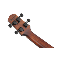The AU series features very unique construction. Rather than being built with a separate top, sides, and back like most ukuleles, the body of the AU starts as a solid block of wood and is routed out, so that the back and sides are a single piece of wood. A top is then added to complete the body. This construction method gives these instruments a unique sound and brilliant playability. They also utilize distinctive features such as a Stereo Sound Port, Elevated Comfort Armrest, and Edgeless Comfort Heel.