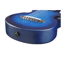 The AU series features very unique construction. Rather than being built with a separate top, sides, and back like most ukuleles, the body of the AU starts as a solid block of wood and is routed out, so that the back and sides are a single piece of wood. A top is then added to complete the body. This construction method gives these instruments a unique sound and brilliant playability. They also utilize distinctive features such as a Stereo Sound Port, Elevated Comfort Armrest, and Edgeless Comfort Heel.