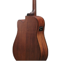The Okoume back and sides generate a woody, warm tone when the guitar is played softly or finger-picked and provide punchy high-mids with a clear projection when strummed.