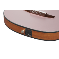 It has less feedback as there’s no sound hole on the body top. Fan bracing, which is commonly used for classical guitars, allows this guitar to have a warm and natural nylon string sound.