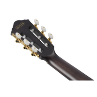 It has less feedback as there’s no sound hole on the body top. Fan bracing, which is commonly used for classical guitars, allows this guitar to have a warm and natural nylon string sound.