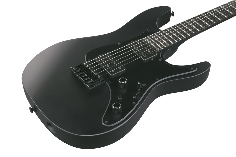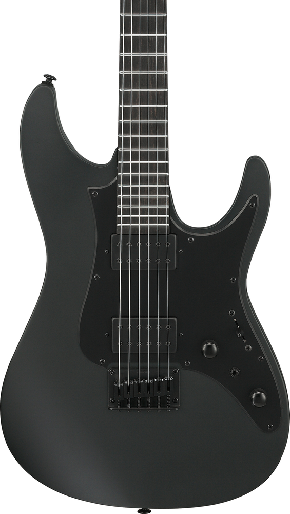 The Iron Label line was originally developed with metal and nothing but metal in mind. Ibanez modded and tweaked until they got to the heaviest-hitting metal axes weve ever built. Theyre purposefully spartan, and you wont find a feature here that doesn't contribute directly to a bone rattling, earth shattering tones these guitars pump out. Carrying forward that same philosophy, the next generation of Iron Label guitars take this raw metal energy to a completely new level. They sport totally blacked out looks, and their supercharged electronics amounting to some of the heaviest-swinging metal axes Ibanez ever produced.