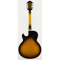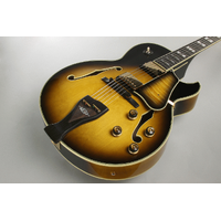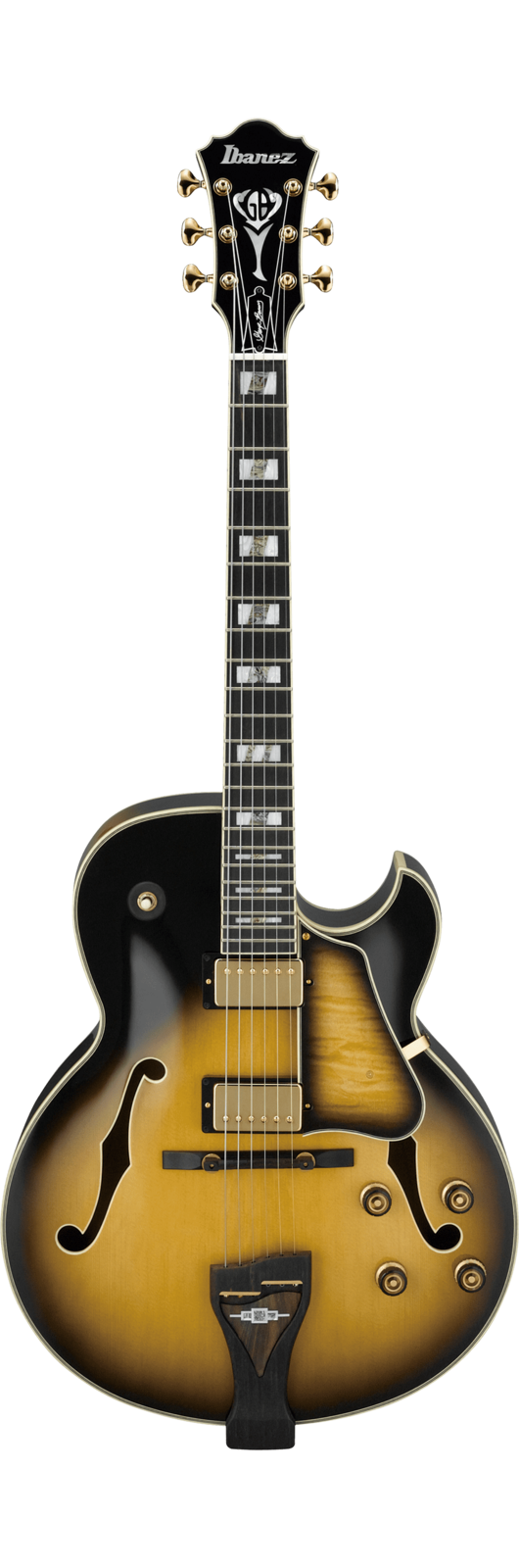 The George Benson and Ibanez relationship lives on in the new LGB300 semi-hollow guitar. The first thing that is evident about the LGB-300 is the stunning attention to detail in the build quality of this guitar. The spruce top with maple back and sides strike the perfect balance between the electric and acoustic sound, giving the LGB300 stunning character and livliness that has become a signature of semi-acoustic Ibanez guitars. Add to this Super 58 pickups, a Florentine cutaway and easy-on-the-eye vintage yellow sunburst finish (with a burst pickguard) and you have a semi-acoustic guitar worthy of a legend.