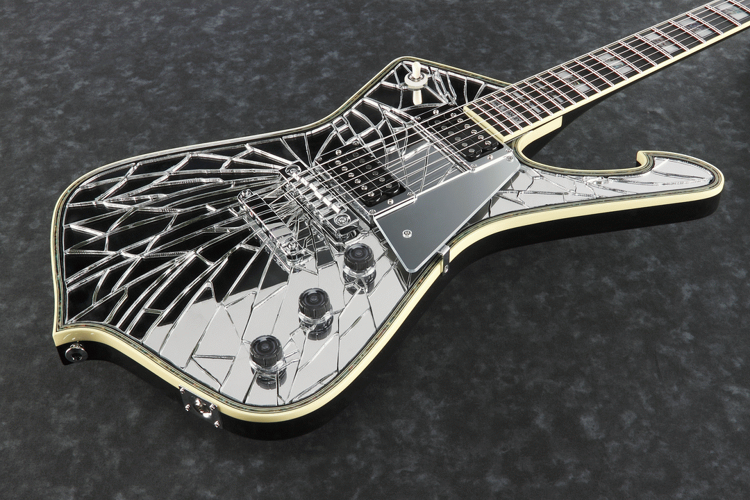 Ibanez obtained the original guitar of Stanley's and were able to faithfully recreate the original Cracked Mirror top with acrylic pieces, reproduced by hand by Japanese craftsmen one piece at a time.