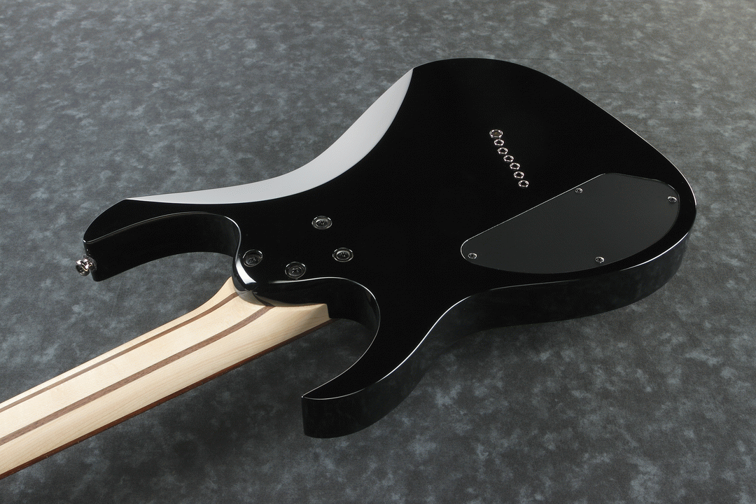 Ibanez is pleased to introduce a RGMS7-BK which features the multiscale. Using the trapezoidal 27”/25.5” scale, the multiscale neck construction provides an equalized tension that creates a lively, open tone. Designed for playability, the slants are matched with the player’s hand angles to facilitate quick playing along with the flatling on the 12th fret. By setting the horizontal point close to bridge’s side, shredding in high frets is easy.