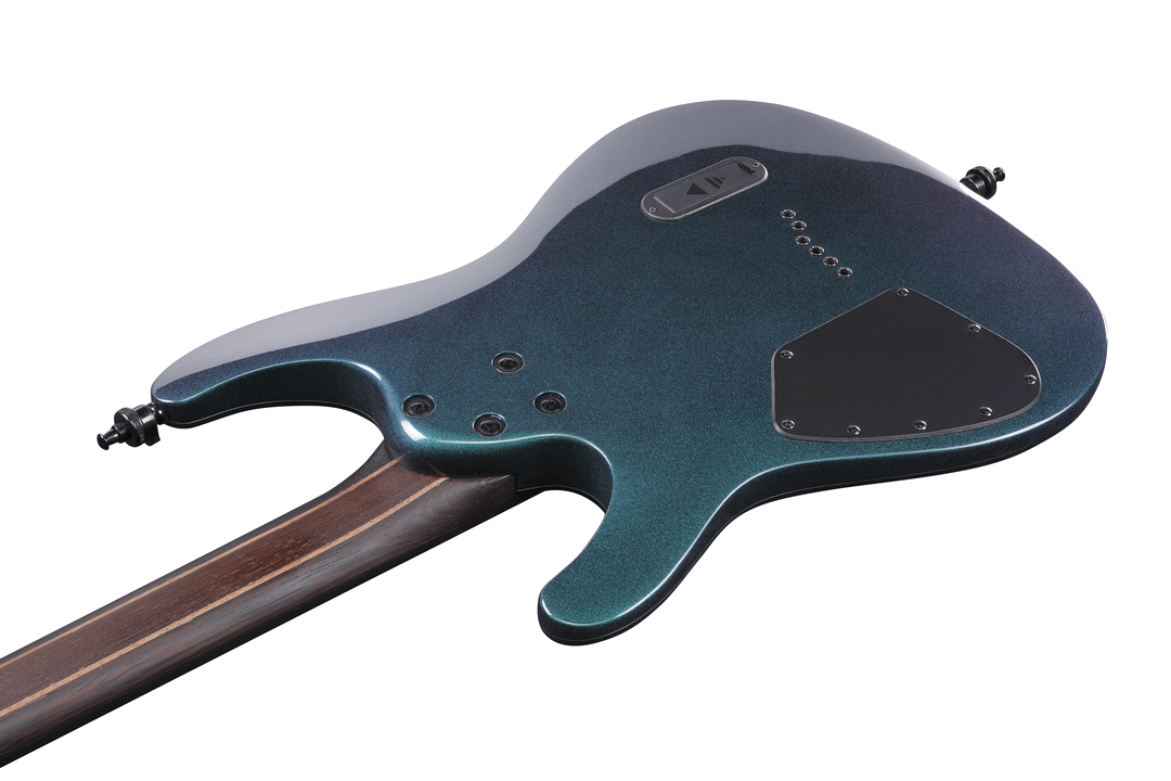 The Axion Label was made for metal, but offers even more for the adventurous players out there. The Axion Label models feature forward-looking developments in sound, playability and looks that take performances higher, deeper and heavier. Arm yourself with an Axion Label guitar and get ready to break some new ground. The S671ALB features a Nyatoh body in stunning Black Aurora Burst Gloss and Blue Chameleon finishes, giving the model an otherworldly color scheme. The Macassar Ebony fretboard provides a tight low end with a quick response and the extremely rigid, super-thin and ultra-playable Nitro Wizard 5-piece Panga Panga/Walnut neck substantially increases sustain. The Sub Zero treated frets can stand up against the hardest riffing and string-bending. The luminescent side dot inlays make it easy for players to perform on dark stages and match the dazzling luminescent Ibanez headstock logo. The Fishman Fluence Modern Humbucker pickups in the neck and bridge positions provide an aggressive tone and a powerful attack. The Fluence Single Width pickup in the middle position delivers a warm, clear tone a stunning punch without excess noise. The Voicing switch allows the pickups to switch from a modern, active high output sound to a crisp, clean and fluid sound. The Gibraltar Standard II enables the optimal transfer of each string’s vibration. The Gotoh® locking tuners provide tuning accuracy and allow for quick, efficient string changing and the Schaller S-Lock strap lock pins hold your guitar securely but make it easy to put the strap on and remove quickly. The S671AL represents a new level of advancement for the modern guitarist.