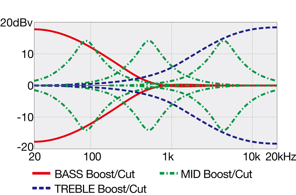The Vari-mid 3-band EQ features a variable mid-frequency control which allows you to dial in an incredibly wide range of sounds.