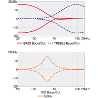 The Ibanez Custom Electronics 3-band EQ is our latest refinement on the concept of simple, straightforward, no-nonsense EQ control. The Boost and Cut for the Mid Control are each centred on slightly different frequencies, an innovation that delivers a preset range of the most favourable bass tones.