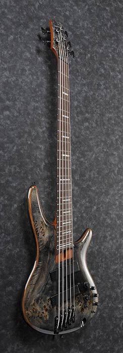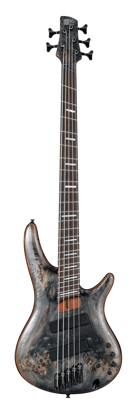 If you crave a new bass tool to enrich your creative palette, the Ibanez Bass Workshop may have already built your next instrument. This new product group focuses on combining unusual concepts with the bass-building virtuosity on which Ibanez has built its reputation. The SRMS805 features gloss finish with beautiful figuring, swirls and darker pockets of Poplar Burl body top, and the new bridge “MR5S”. The Okoume body delivers a warm tone with rich resonance. The great feature of the new bridge is its adjustable saddles for string spacing. It surly answers to the bassist’s detailed demands and helps finding out the best string spacing for many playstyles. By loosing screws, the saddles can be adjusted +/-1.5mm. Also, The MR5S is independently and securely locked down to the body for maximum vibration transfer without interference. With its multi-scale design, the SRMS805 creates an alive open tone and is comfortable to play. The ergonomic construction coordinates with the player's hand angle as it moves up and down the neck, facilitating a quick, smooth playing action. A 5pc Jatoba/Walnut neck, the rigid and musical hardwoods are set against one another to provide a thin neck with reliable long-term harmony and the Panga Panga fretboard on the neck brings a tight response. The neck end adjustment allows you to adjust the neck easily without loosening the strings. The Ibanez Custom Electronics 3-band EQ, EQ bypass switch, and 3-way mid-frequency switch allow for precise tonal control (250 Hz, 450Hz, and 700 Hz). When the EQ bypass is activated, the treble-tone control knob acts as a passive tone control for the instrument’s output. The Bartolini® BH2 pickups, the dual-coil style configuration with lower resonant frequency, provides the balancing warm response, with tighter bottom end and a fuller midrange.