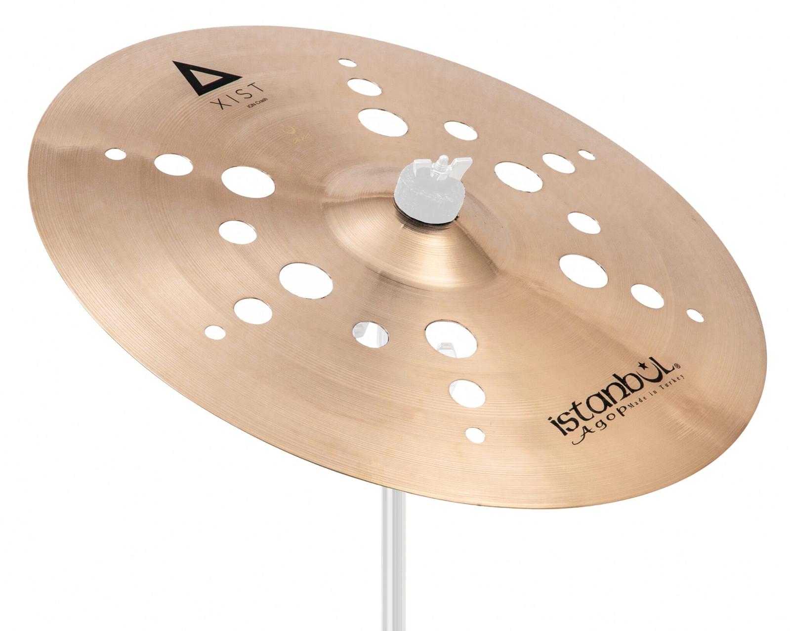 The symmetrically placed geometric holes give this crash a splashy, raw attack with a very quick decay. Great for accents, hand drumming or in a stack with other cymbals.