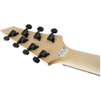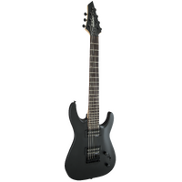 This beastly axe features a 26.5" scale length for better low-end articulation, a lightweight and resonant poplar body with an arched top and a bolt-on maple neck with graphite reinforcement and scarf joint for rock-solid stability. Hosting 24 jumbo frets and piranha tooth inlays, the 12"-16" compound radius amaranth fingerboard creates the ideal playing surface for fat riffs and easy chording near the black plastic nut while gradually flattening in the upper registers for lightning-quick solos and wide bends without fear of fretting out.