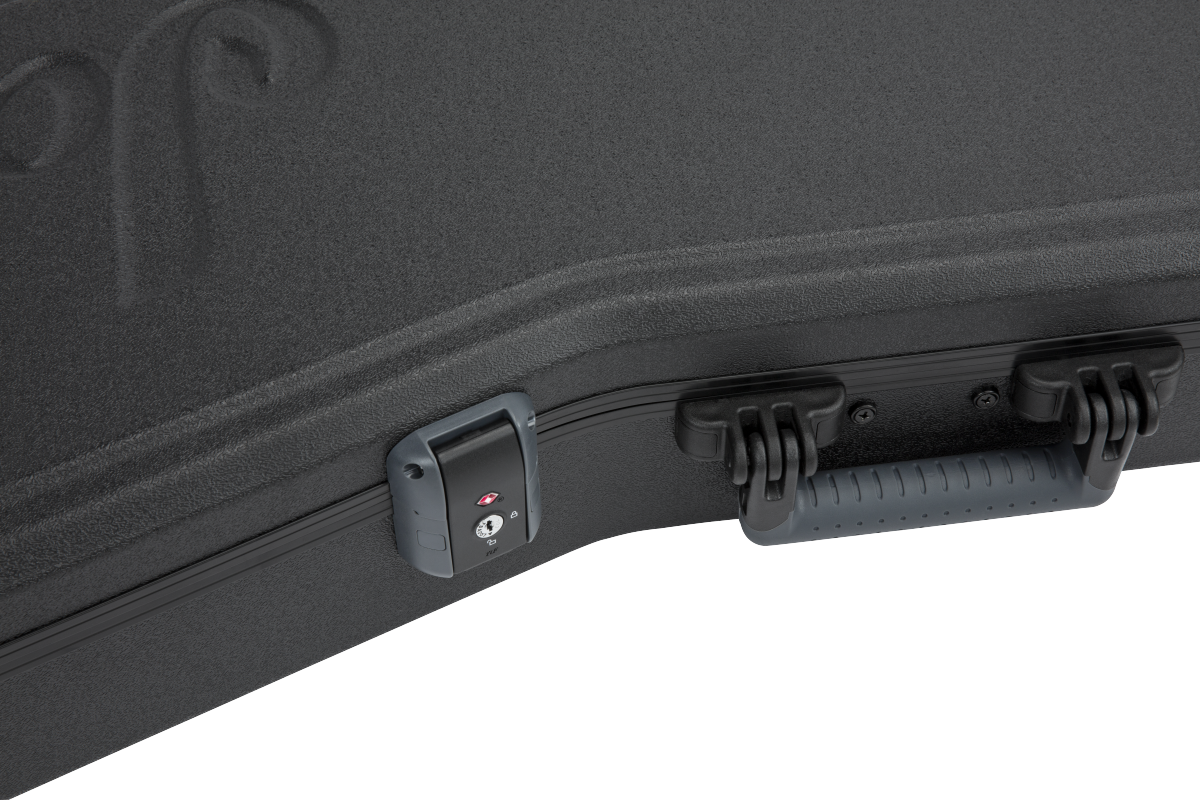 Transport and store your Jackson® King V™ 6 and 7 string guitar with confidence in this deluxe molded case, designed specifically for your instrument. Combining advanced materials with a TSA-accepted locking center latch, this case will help your guitar arrive at its destination unharmed. From the rock-solid military-grade outer shell to the comfortable handle and high-grade plush interior lining, every element of this case has been engineered to create the ultimate in instrument protection. The interior pockets are the perfect place to stash accessories like picks, cable and straps. The rubberized feet on the hinged edge create additional stability - no more worrying about your case tipping over when you set it down.