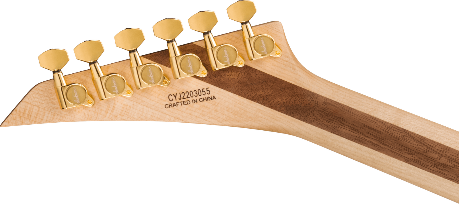 True neck-through-body construction has been a Jackson hallmark since 1980, allowing for greater playability, warmer tonal spectrum and enhanced sustain. This method of guitar construction involves seamlessly extending two pieces of maple and a center piece of walnut wood used for the neck through the entire length of the body. Graphite- reinforcement rods flanking the truss rod provide even more neck stability to help the instrument withstand the rigors of the road.