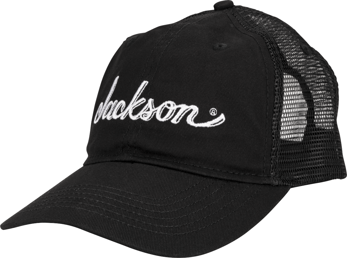 Metal players and fans will love this Jackson® Trucker Hat, which features an embroidered logo on the front, and a mesh back with an adjustable plastic strap. One size fits most.