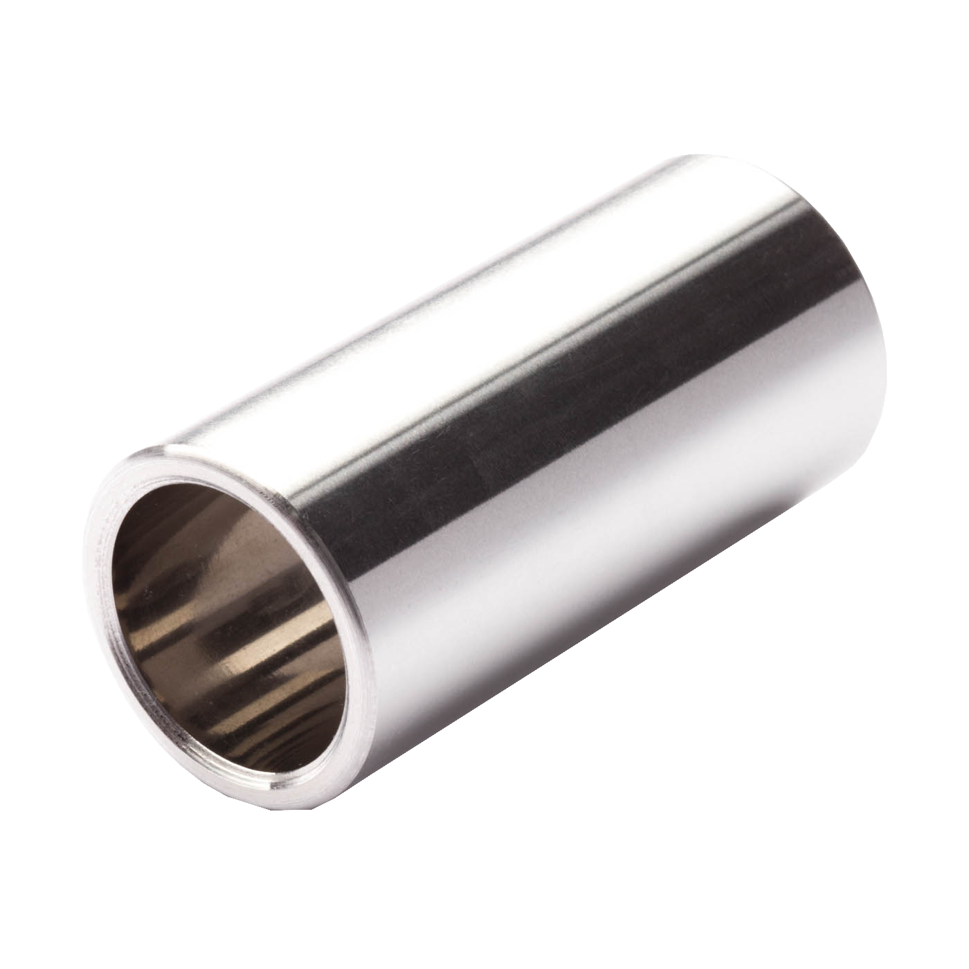 This chromed short steel slide provides a bright tone and is comfortably lightweight, featuring medium wall thickness and a large diameter.
