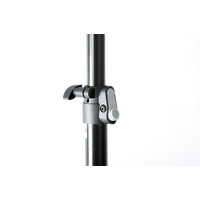 Two easy-to-carry speaker stands made of high quality aluminum in a carrying case. Fiberglass-reinforced fittings and a compact clamp with a patented push-button system affords user-friendly height adjustment and ensures stable support for the speakers. The leg construction adjusts by an easy-to-use clamping lever.