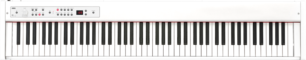 The D1 is focused on providing the ultimate in slim, compact design. The result is a top-class keyboard that reproduces the playing feel of a grand piano, and yet is highly portable. With its high-quality keybed developed by KORG and a rich variety of 30 sounds that will shine on stage, this instrument is the perfect fit for daily practice or performance.