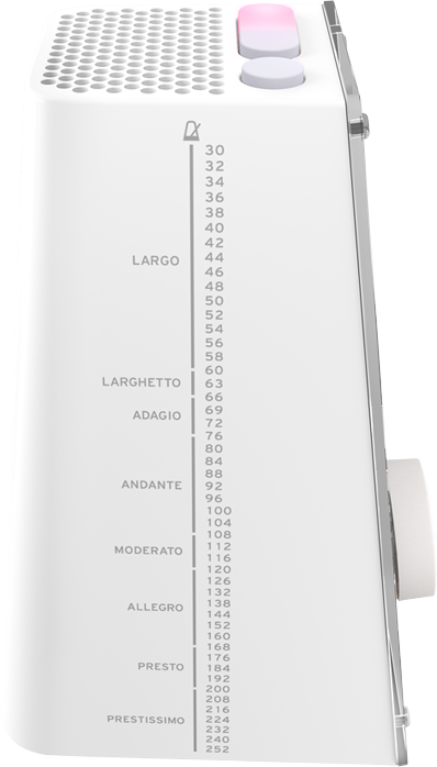 The START/STOP button located on top of the unit blinks in two colors, red and green, giving you a clear visual indication of the tempo. You can even start practicing with the volume set to zero. The TEMPO/CALIB dial on the top panel provides easy access to the numerical setting that you want. The content of the setting is visible at a glance in the large display.