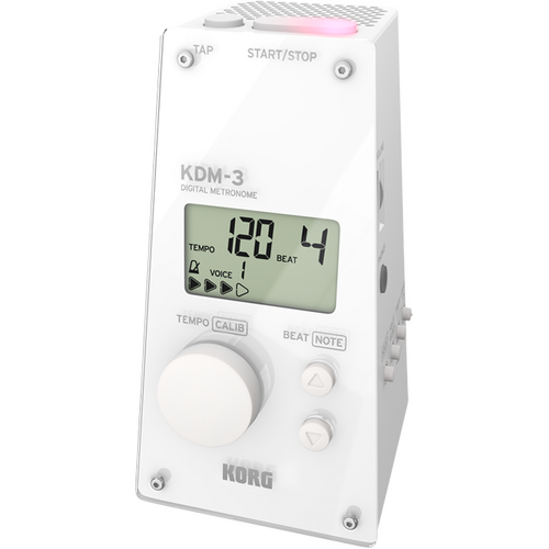 The KORG KDM series is renowned for its powerful volume and its clearly-audible tone. We are proud to announce the latest model, the KDM-3 which features a fresh new appearance. Along with an attractive look that resembles a miniature mechanical metronome, it also contains a rich variety of beat patterns and metronome sounds. It's also packed with the convenient functions that you expect from a digital unit and will support your performance in situation, regardless of genre or instrument.