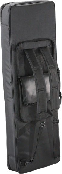 The design allows you to carry the instrument backpack-style or in your hand. When not using the backpack straps, you can keep them in the rear pocket. There's also an additional pocket for stowing cables or sheet music.