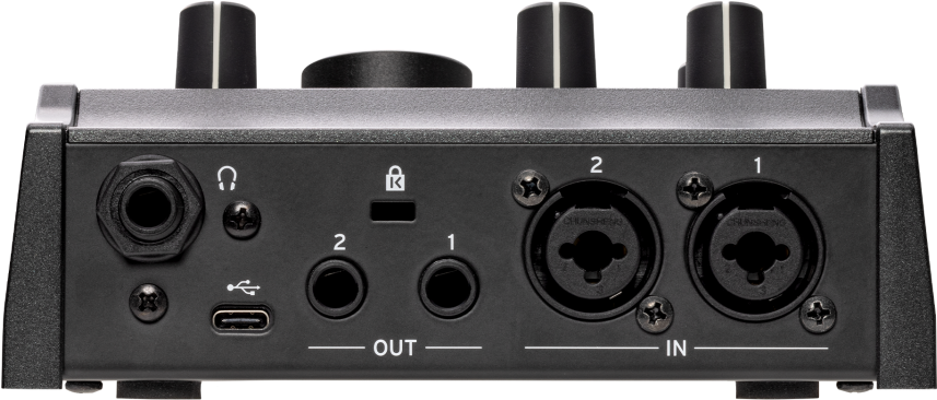 Front-panel knobs provide direct access to essential functions, and zero-latency direct monitoring ensures immediate feedback during recording or live performance. The headphone output can be assigned independently of the main outputs, allowing you to route a click track exclusively to the headphones or monitor cue signals when connected to DJ applications. (*)