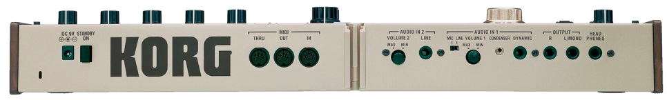 The microKORG provides two external audio input jacks. You can apply filtering or effects to an external sound such as a sampler or other audio source to create truly original sounds.