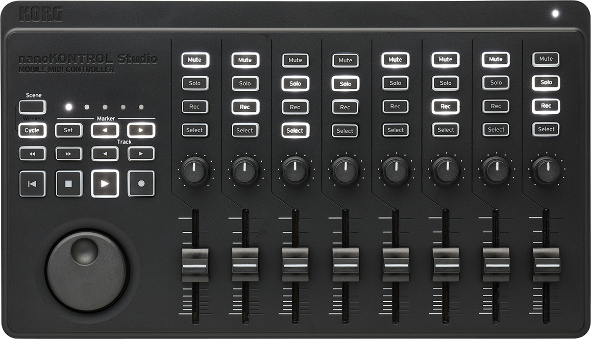 Smaller than a letter-sized sheet of paper, the nanoKONTROL Studio is designed for thinness. It’s the perfect size to easily carry in a bag and use with your computer. In spite of its compact size, its controllers provide generous power and a solid feel, making it a convenient and versatile MIDI controller.