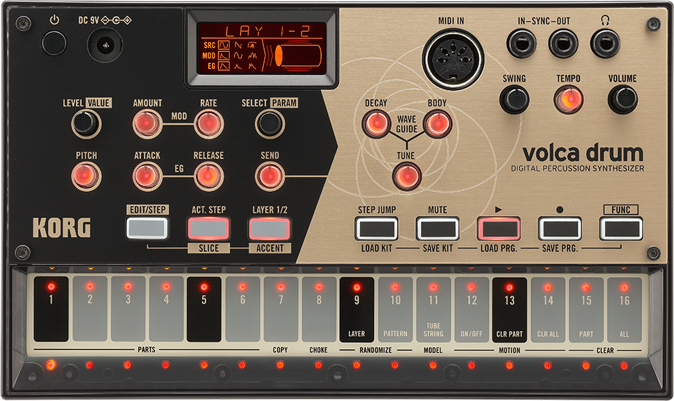 The volca series is all about unique sound. Whether it's analog, PCM, or FM, the volca series puts unique sounds into an accessible platform. And now, the series is joined by a new rhythm machine that brings yet another sonic character. It's the volca drum digital percussion synthesizer.