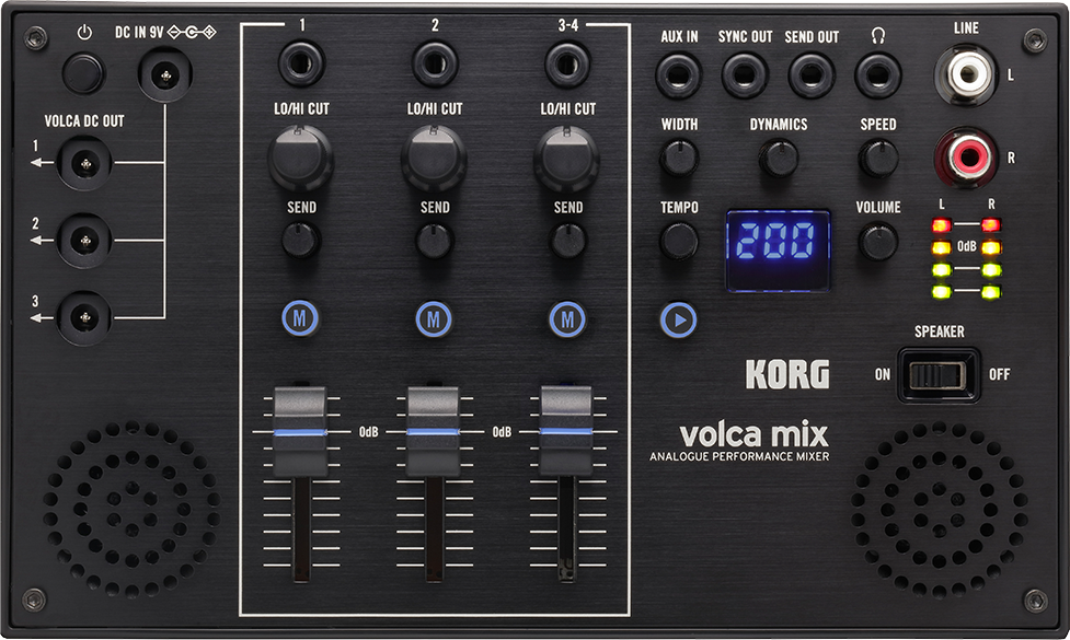 Volume faders are easy to control, plus crisp-sounding LO/HI CUT filters, and a master chain that radically transforms the sound. In addition to the sync function found on all volcas, there are also DC output connectors that can supply power for up to three volca units. Numerous functions to facilitate your on-stage volca performances have been packed into a high-quality aluminum-paneled body, reminiscent of a high-end DJ mixer.