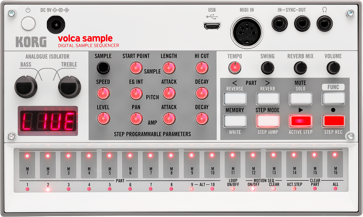 Furthermore, with its USB, SYNC IN-OUT and MIDI connections, volca sample can integrate seamlessly with your live rig, production studio and of course any other volca! (link to the volca dedicated website)