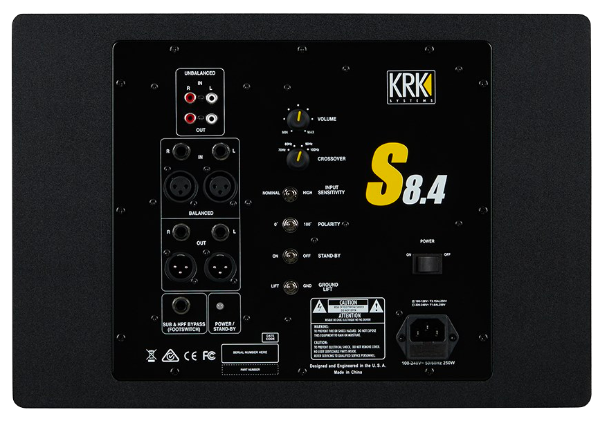Pairing the S8.4 subwoofer with KRK or another studio monitor delivers an optimized mixing and listening experience with extended low end, while the exclusive bypass-control feature provides full range audio to the monitors without switching off the subwoofer. KRK’s S8.4 subwoofer doesn’t just deliver precise bass and a rich feature set: it’s the next dimension in subwoofer performance.