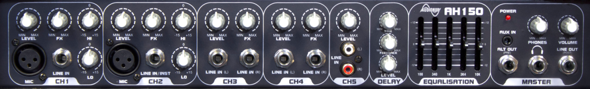 The AH150 multi-input combo features 5 channels, 5-band graphic master EQ and Digital Delay and is designed to cater for a wide number of different instruments. Ideal for duo's and medium sized gigs, or for bigger gigs it can be used as a personal monitor on stage! Its compact design is great for small stages and makes it easy to transport around. The AH150 delivers optimum performance, flexibility and sound quality for a wide array of audio inputs: Keyboards, E-drums, mics, acoustic plus electric instruments and playback are all at home with the AH150. The principle behind the AH150 is simple: ALL INSTRUMENTS WELCOME!