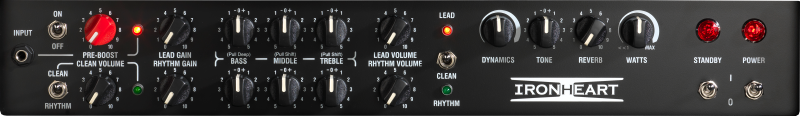 Featuring a full 3-channel pre-amp with clean, rhythm and lead channels, plus a footswitch able pre-boost section, the BCC-IRT120H also features a vari-watts control, which allows you to get the great guitar tone you are after at any wattage level without compromising your tone, ever. Lovingly handcrafted in our UK workshop, our IRONHEARTs are Forged in Iron!