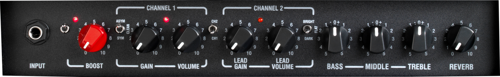 CH1 with selectable ASYM/CLEAN/SYM gain modes