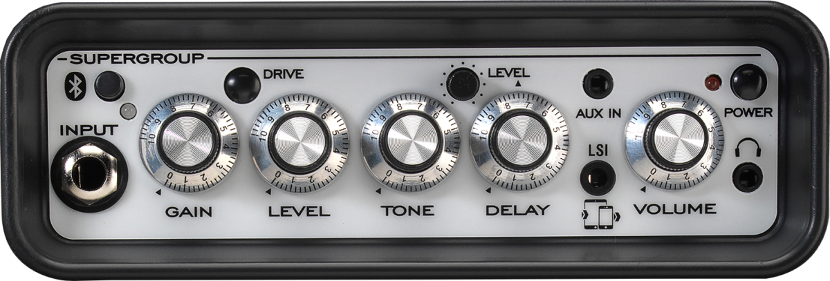 Styled after the iconic Laney SUPERGROUP the New Laney MINI-STB-SUPERG-2 is a BLUETOOTH enabled, battery powered amp, perfect for desktop, backstage or practice. a super compact solution for guitar tone and performance anywhere. The MINI-STB-SUPERG-2 model features a clean & drive channel, gain, tone and volume dial, guitar input, Aux in, On-board tape style digital delay with level control, headphone socket and the unique Laney LSI – Laney Smartphone Insert. The LSI allows you to connect your amp to your favourite guitar tone generating app to access all your favourite guitar tones.