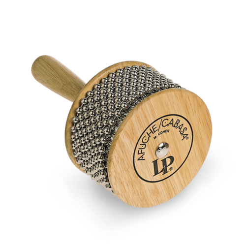 Developed and introduced by LP over 40 years ago, the Afuche®/Cabasa has become one of the most essential percussion instruments in history. Loops of steel bead are wrapped around a textured cylinder to produce a variety of scraping rhythmic patterns. Available in multiple sizes, the larger versions produce greater volume.