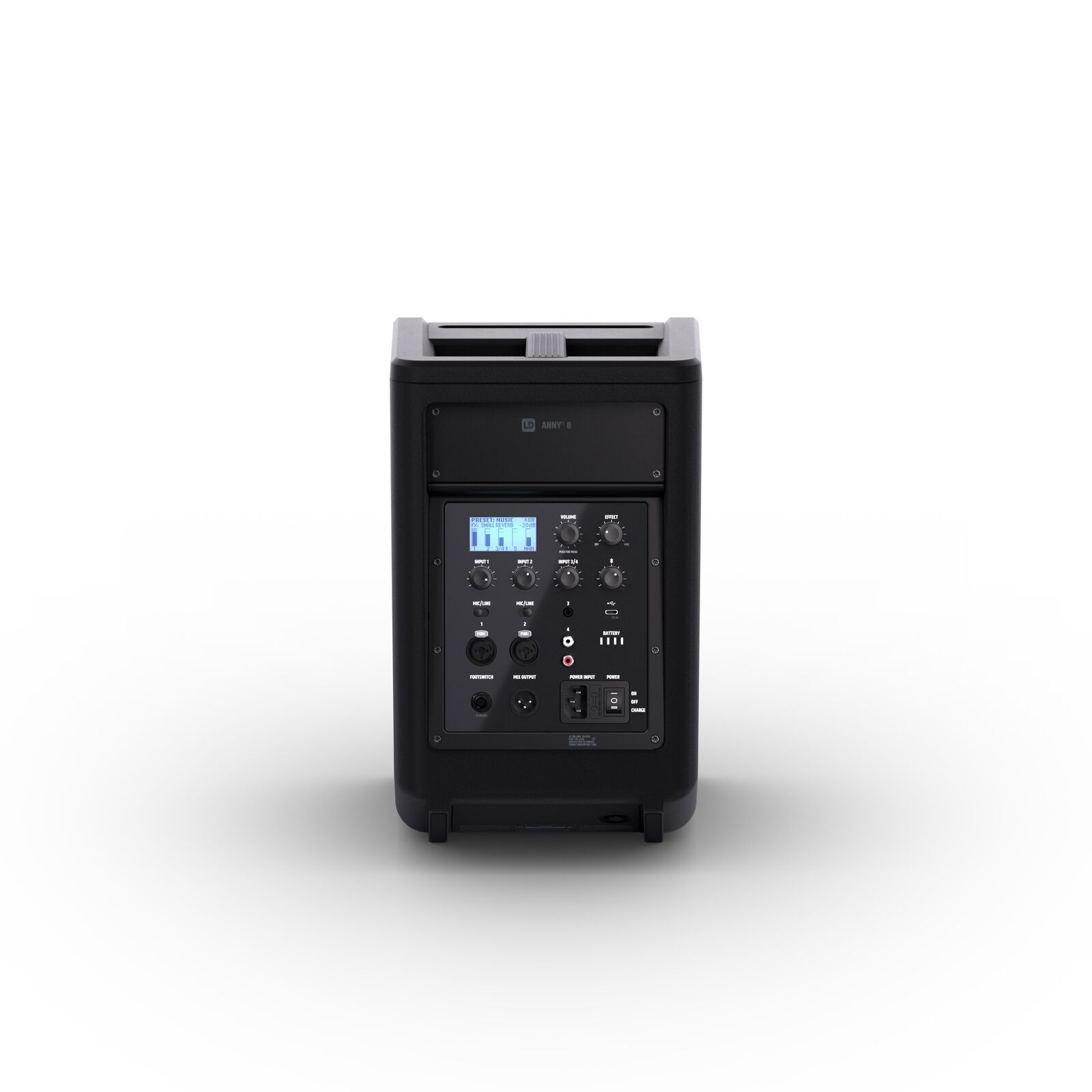 With an integrated 5-channel mixer, 3-band EQ, 5 application presets (MUSIC, LIVE, VOCAL, ECO, FLAT) and effects such as reverb & delay, it combines comprehensive features and outstanding sound quality in a compact and timeless design. ANNY® 8 impresses with its versatile connection options: two microphone/line combo inputs, one stereo channel with 3.5mm jack (AUX) and RCA inputs as well as Bluetooth 5.0 with AAC codec.