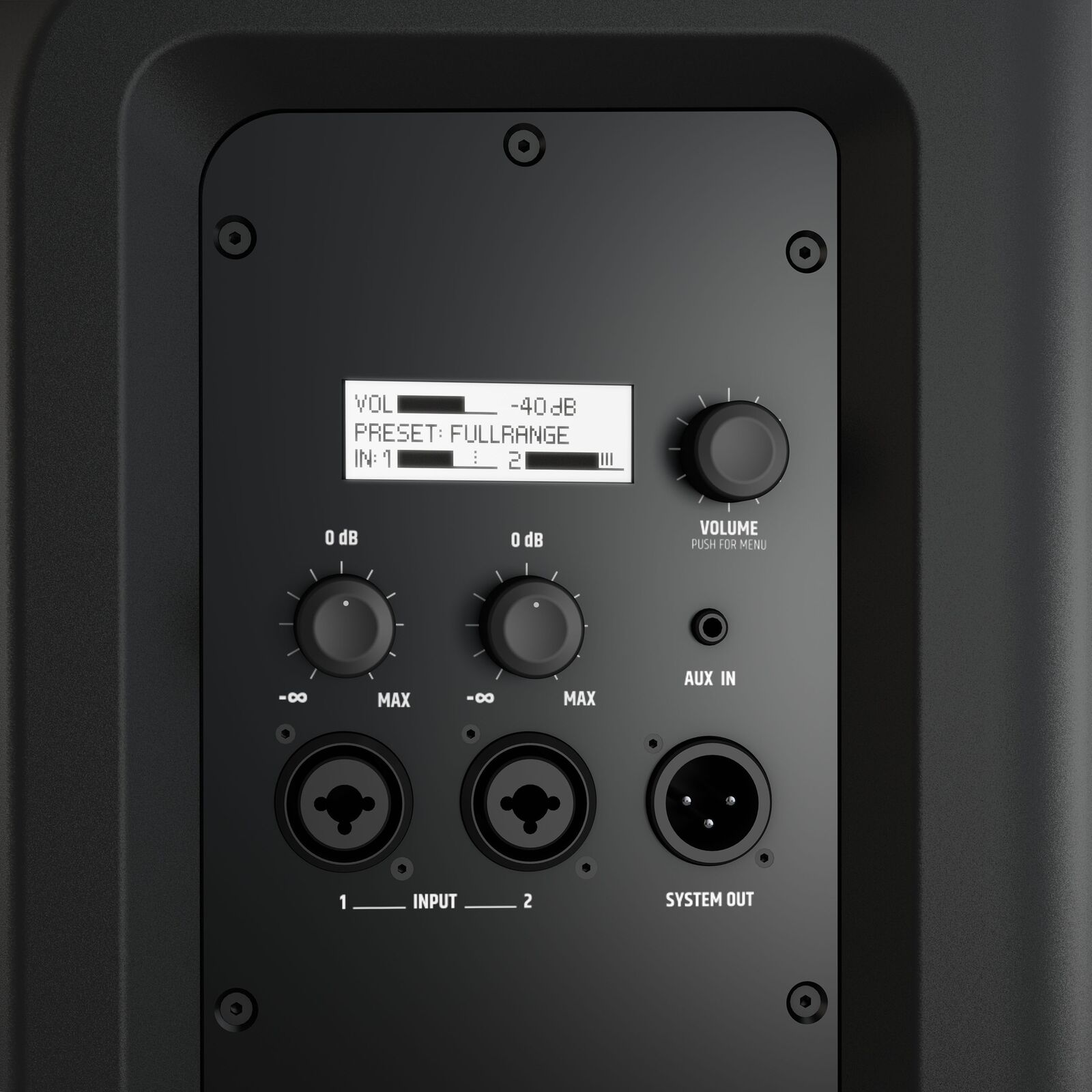 Drawing on DynX DSP technology by LD Systems, the speaker delivers perfect performance with maximum clarity and power under all conditions. 4 presets, a 3-band EQ and a delay function facilitate optimal adjustment of the sound to the venue conditions. The 2 line/mic input channels with individual gain controllers, plus mono mix output, allow a variety of signal sources to be connected.